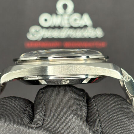 Silver-tone stainless steel case and bracelet. Fixed silver-tone stainless steel with black PVD with tachymet bezel. Black dial with silver-tone hands and index hour markers. Minute markers around the outer rim. Dial Type: Analog. Luminescent hands and markers. Chronograph – three sub-dials displaying: 60 second, 30 minute and 12 hour. Omega Calibre 1861 Hand Wind movement, containing 18 Jewels, composed of 234 parts, bitting at 21600 vph, and has a power reserve of approximately 48 hours. Scratch resistant hesalite crystal. Pull / push crown. Solid case back. Round case shape, case size: 42 mm, case thickness: 14.3 mm. Band width: 20 mm, band length: 7 1/4 inches. Deployment clasp. Water resistant at 50 meters / 165 feet. Functions: chronograph, hour, minute, second, tachymeter. Speedmaster Professional Series. Dress watch style. Watch label: Swiss Made. Pre-owned Omega Speedmaster Professional Chronograph Hand Wind Black Dial Men’s Watch 311.30.42.30.01.005.