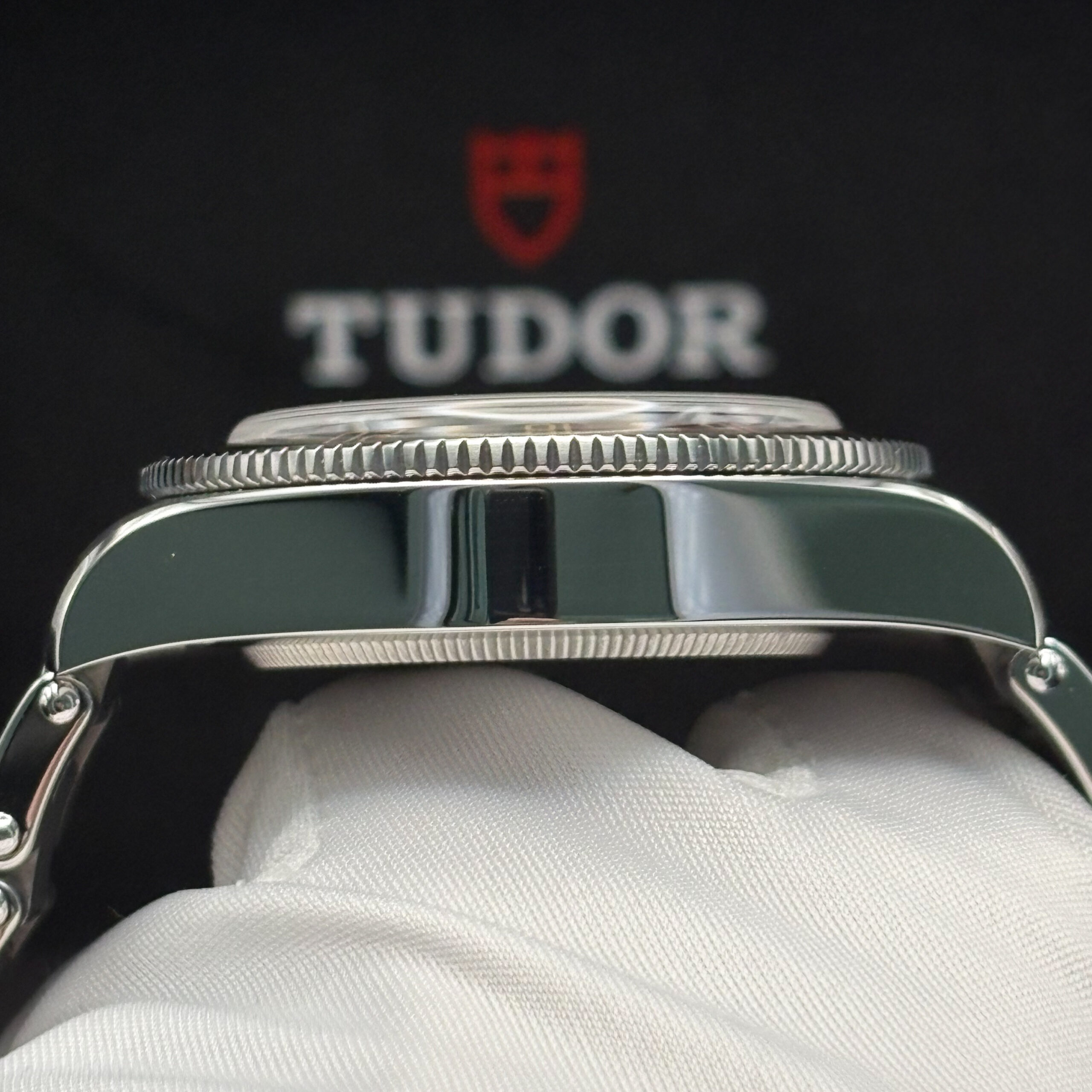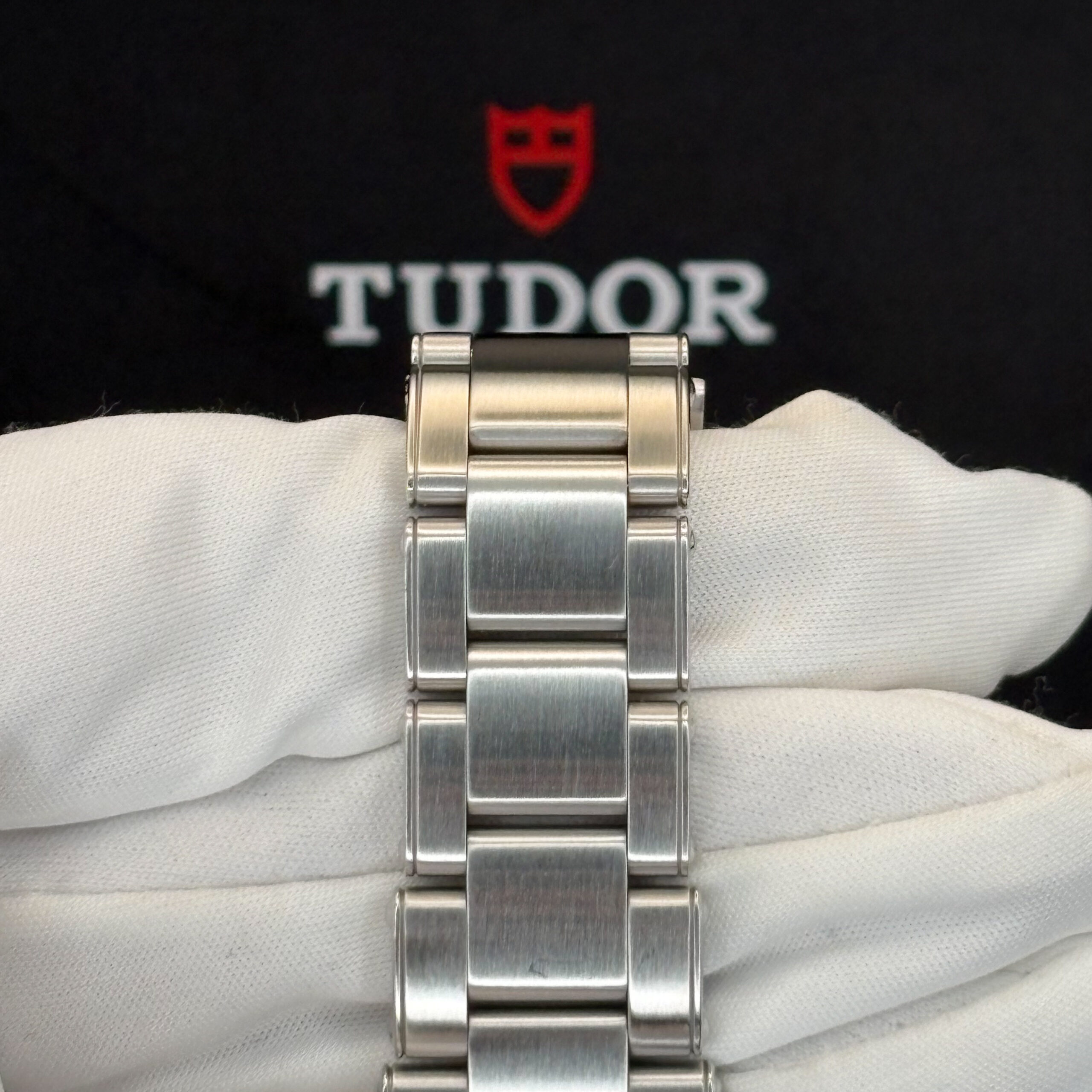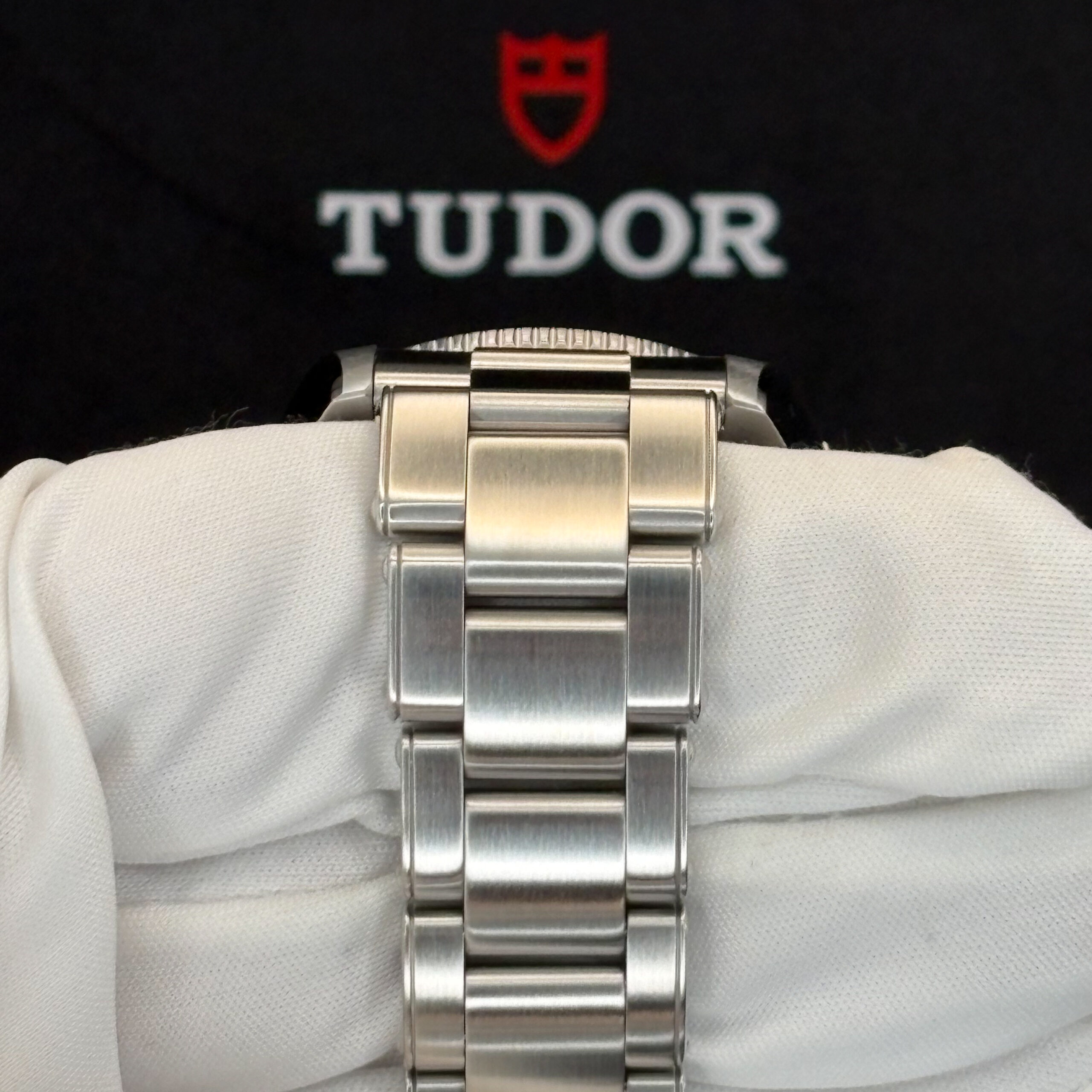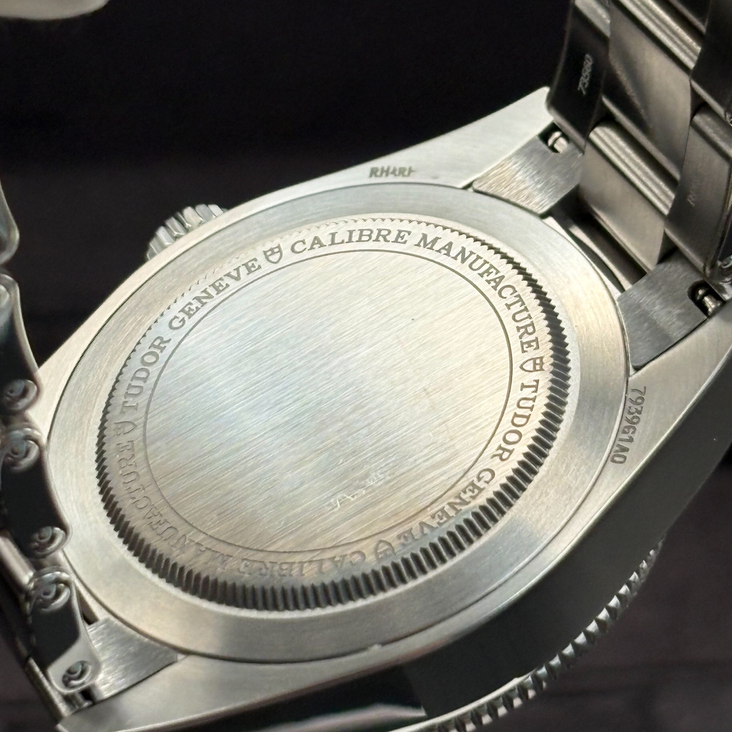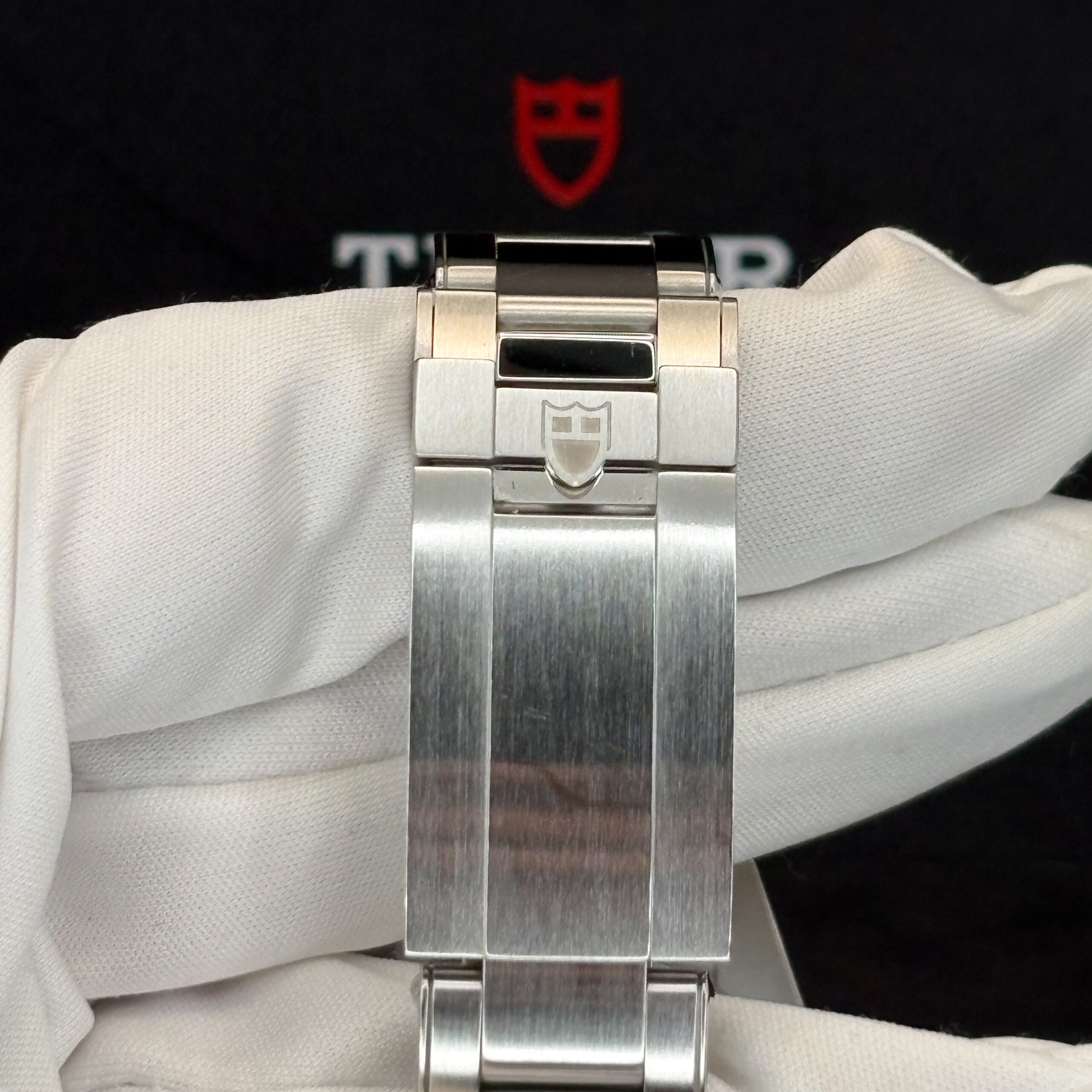 Silver-tone stainless steel case and bracelet. Bi-directional rotating two-tone (black and red) stainless steel bezel. Black dial with gold-tone hands and batons hour markers. Minute markers around the outer rim. Dial Type: Analog. Luminescent hands and markers. Date display at the 3 o’clock position. Tudor Calibre MT5450-U automatic movement with a 65-hour power reserve. Scratch resistant sapphire crystal. Screw down crown. Round case shape, case size: 39 mm, case thickness: 12.8 mm. Band width: 20 mm. Fold over clasp. Water resistant at 200 meters / 660 feet. Functions: date, hour, minute, second. Black Bay Series. Sport watch style. Watch label: Swiss Made. Tudor Black Bay Automatic Black Dial Men’s Watch M7939G1A0NRU-0001.