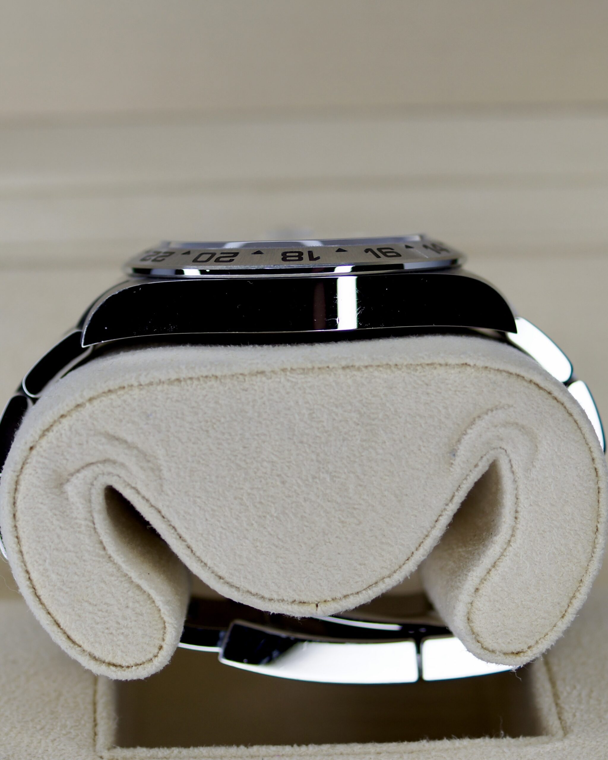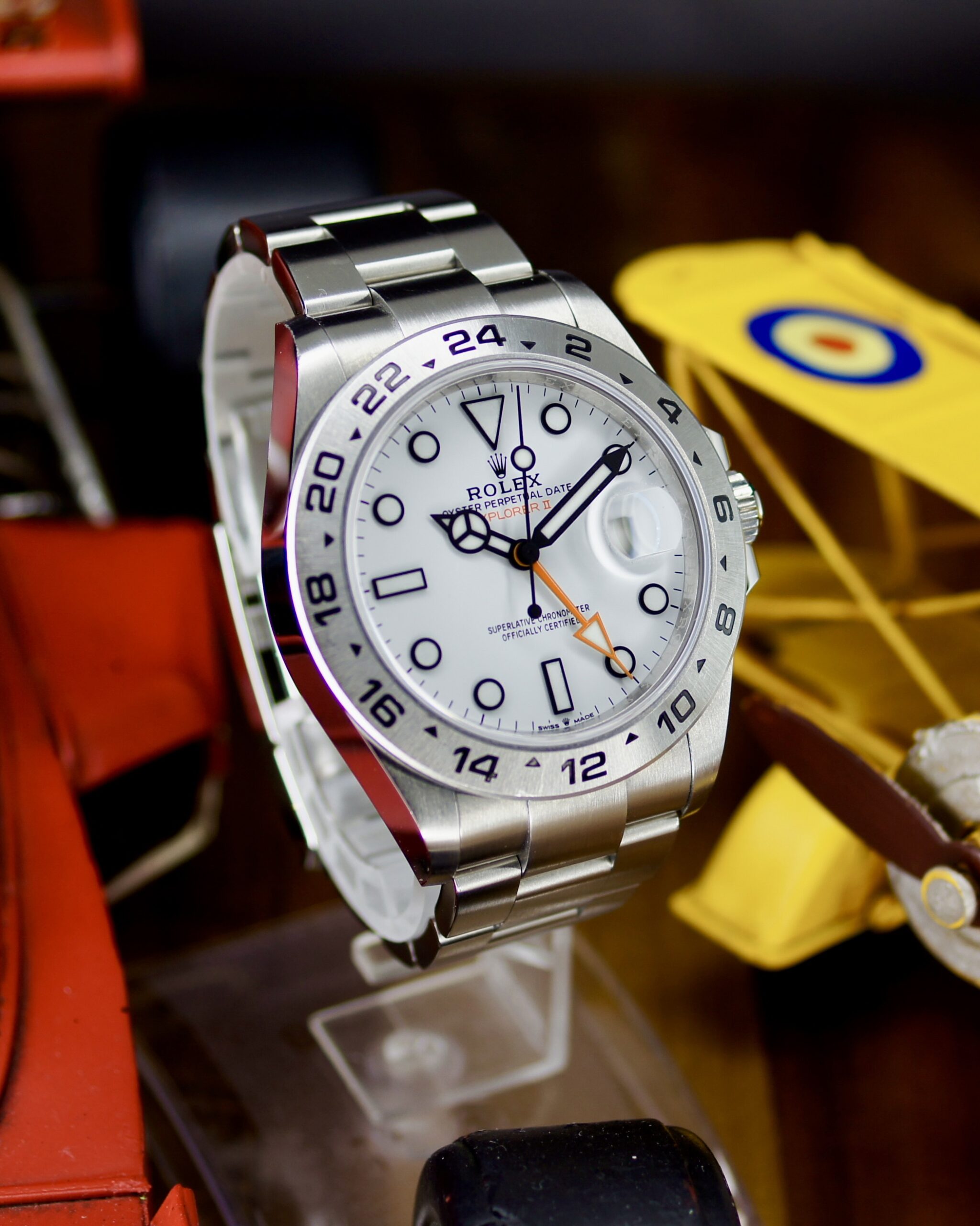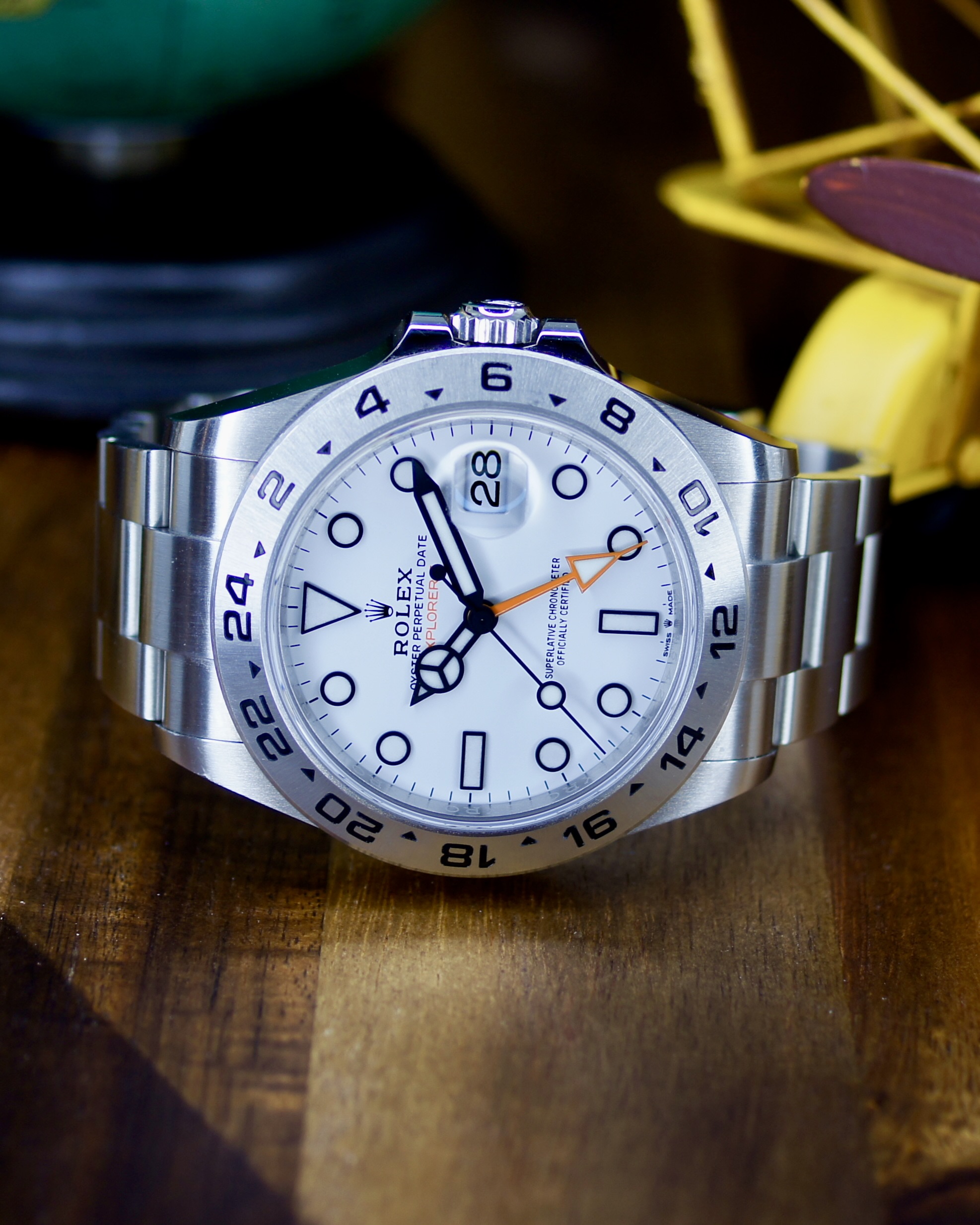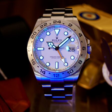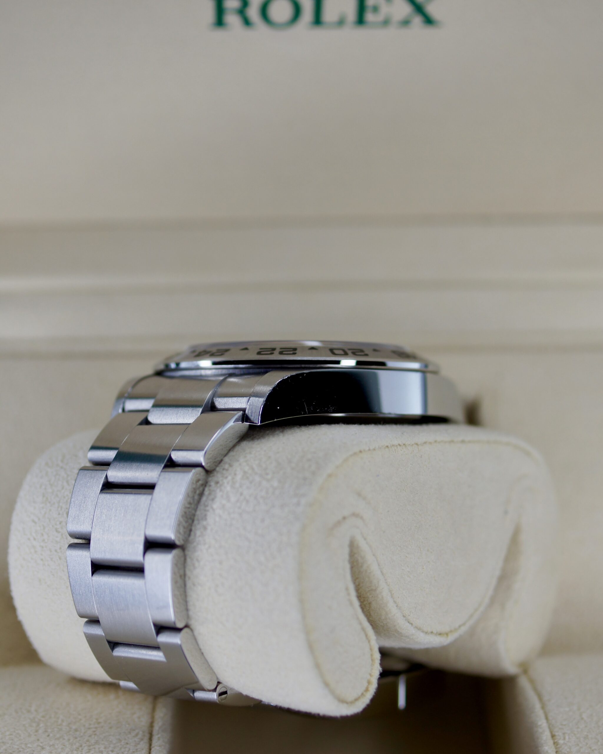 The Rolex Explorer II ref. 226570 is a true tool watch built for those who push the limits. In its 42mm Oystersteel case with a fixed 24-hour bezel, it delivers rugged reliability when conditions get tough. The signature orange 24-hour hand stands out clearly against the black dial, making it easy to track day and night no matter where your journey takes you. Powered by the Caliber 3285 with a 70-hour power reserve, it offers precision you can count on, along with 100-meter water resistance for real-world durability. Luminous Chromalight markers glow strong in low light, and the bracelet feels solid and comfortable for all-day wear. Simple, capable, and ready for anything.